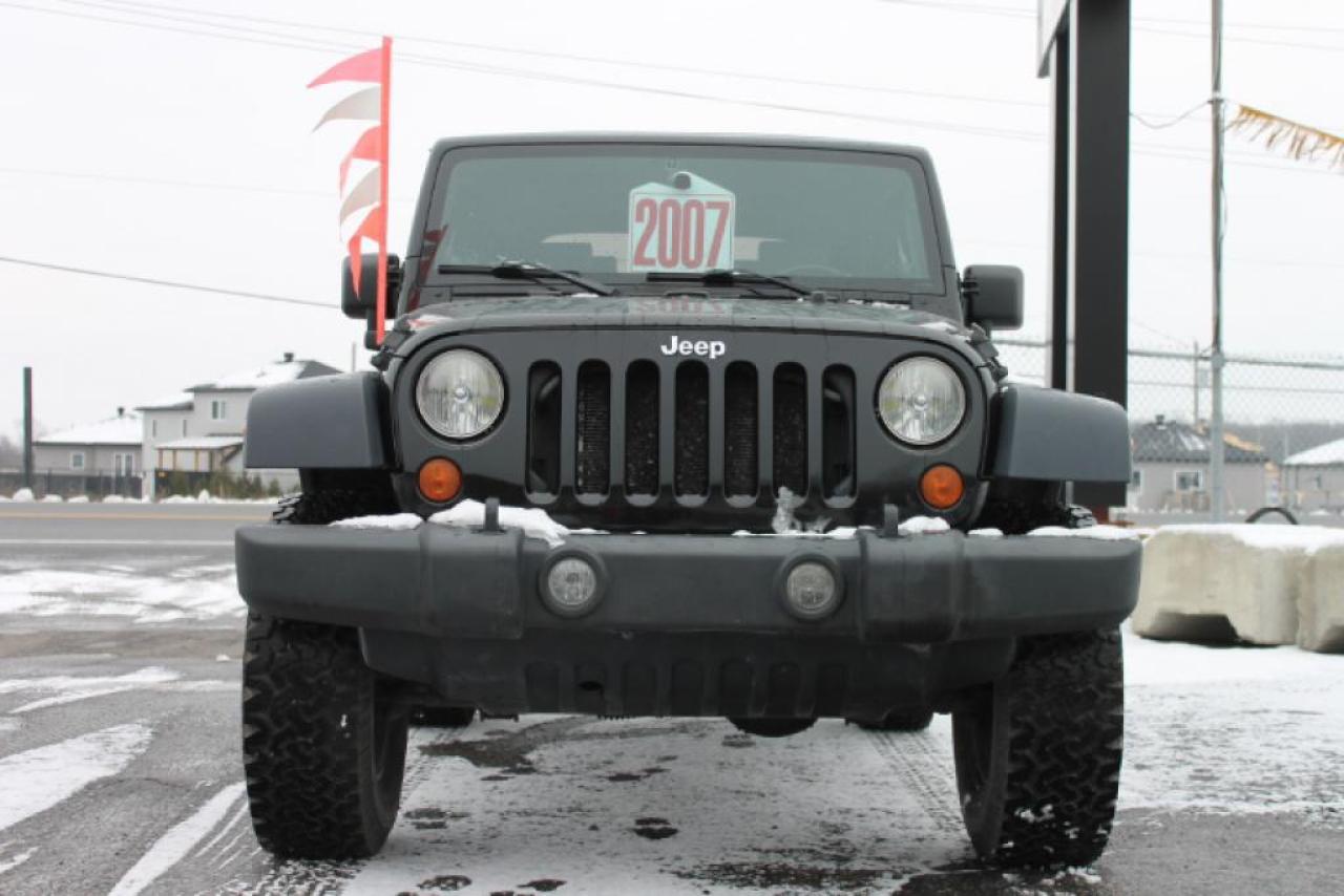 ***WOW!!! SUPERBE JEEP WRANGLER 2007. AUTOMATIQUE avec BAS KILOMÉTRAGE. Toit mou comme neuf! Véhicule en excellent état mécanique et esthétique! AM/FM/CD/MP3/aux, prise de courant, régulateur de vitesse, 5 pneus récents, marchepieds, mags et tellement plus! NE MANQUEZ PAS CETTE OCCASION CHEZ LE VRAI SPÉCIALISTE DU CAMION!!!***Tous nos camions sont INSPECTÉS, CERTIFIÉS ET GARANTIS ; voilà notre force chez Le Vrai Spécialiste du Camion. Nous payons le MAXIMUM pour votre ÉCHANGE. Financement disponible Nous offrons 1ère ,2e, 3e chance au crédit. Échange accepté. CARPROOF sur demande. Nous offrons un service à la clientèle PERSONNALISÉ et des véhicules de QUALITÉ au meilleur prix. OUVERT DU LUNDI AU SAMEDI. Visitez et voir plus de photos sur notre site Internet : www.specialisteducamion.ca