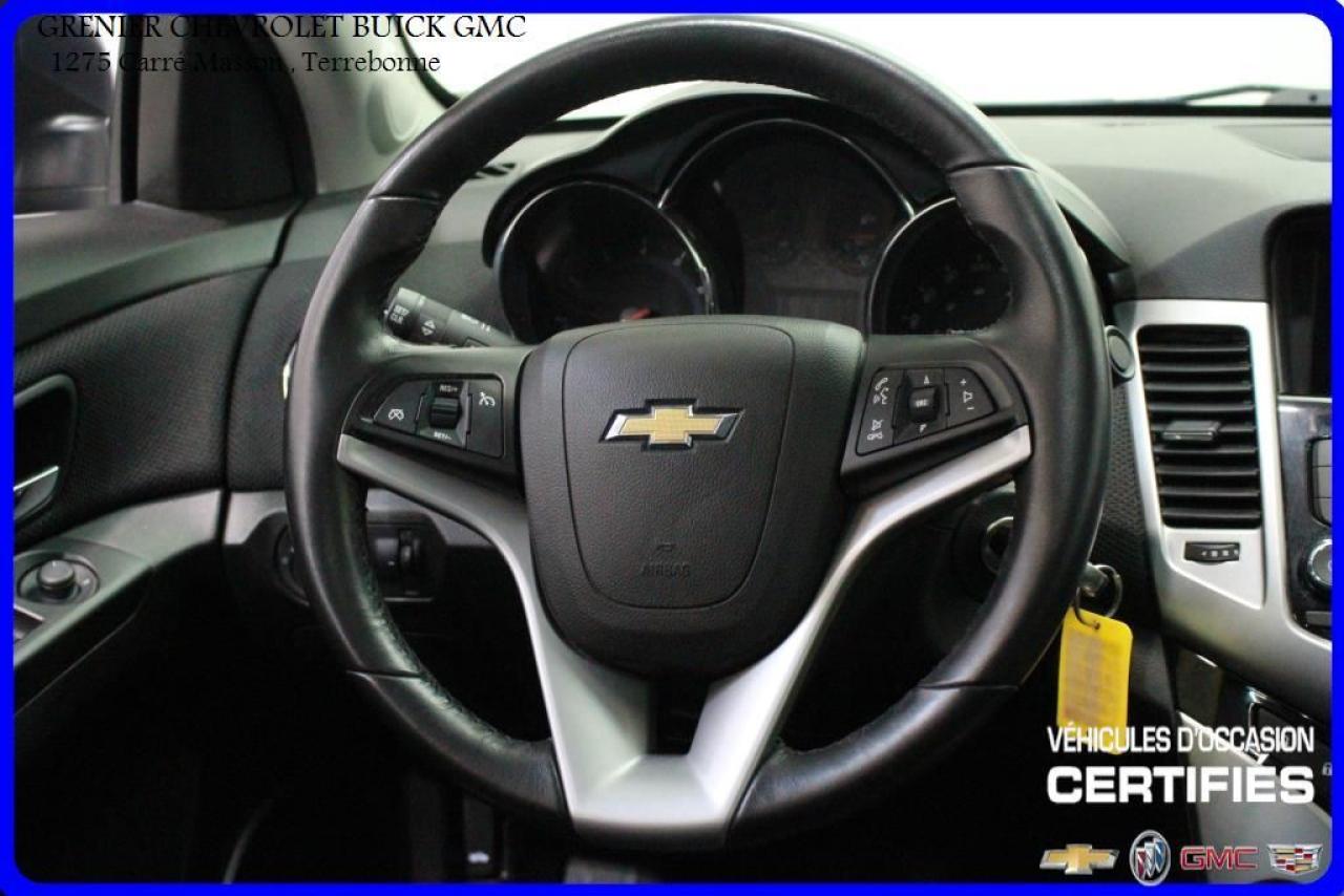 JAMAIS ACCIDENTÉ + MAGS 18 SYSTÈME DE SON PIONEER DÉMARREUR À DISTANCE + navigation + cuir + toit ouvrant + sièges chauffants + caméra de recul + jupes + ailerons + écran tactile + commandes vocales + commandes audio au volant + régulateur de vitesse + volant inclinable + air climatisé Garantie jusqu'au 24 Février 2019 ou 160 000 kilomètres À voir absolument : un superbe CHEVROLET CRUZE 2014, à vendre chez GRENIER OCCASION CHEVROLET BUICK GMC NOUS SOMMES OUVERT 7 JOURS PAR SEMAINE POUR MIEUX VOUS SERVIR 1275 CARRÉ MASSON , TERREBONNE Nous sommes situé à 20 minutes Saint-Eustache/ Saint-Jérôme/Laval/Repentigny/montréal. Programme de véhicules d' occasion certifiés. Rapport Carproof disponible gratuitement. Inspection en 150 points. Le prix affiché inclus un rabais de 500 $ avec un financement.