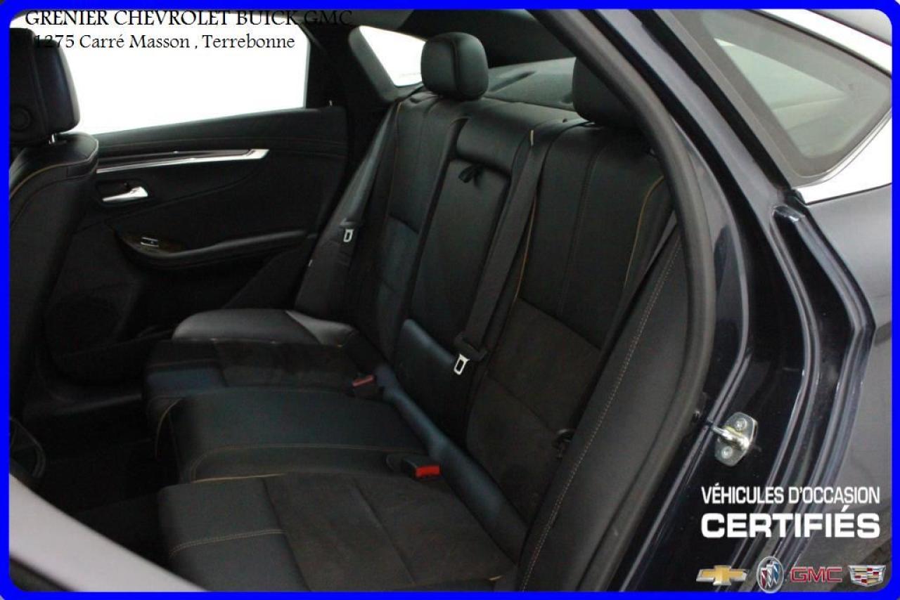 JAMAIS ACCIDENTÉ + AVERTISSEUR D'ANGLE MORT AVERTISSEMENT PRÉ-COLLISION + cuir et suède + sièges chauffants + caméra de recul + radar de recul + écran tactile + commandes vocales + commandes audio au volant + régulateur de vitesse + groupe électrique + air climatisé Garantie jusqu'au 30 Avril 2018 ou 160 000 kilomètres À voir absolument : un superbe CHEVROLET IMPALA 2014, à vendre chez GRENIER OCCASION CHEVROLET BUICK GMC NOUS SOMMES OUVERT 7 JOURS PAR SEMAINE POUR MIEUX VOUS SERVIR 1275 CARRÉ MASSON , TERREBONNE Nous sommes situé à 20 minutes Saint-Eustache/ Saint-Jérôme/Laval/Repentigny/montréal. Programme de véhicules d' occasion certifiés. Rapport Carproof disponible gratuitement. Inspection en 150 points. Le prix affiché inclus un rabais de 500 $ avec un financement.