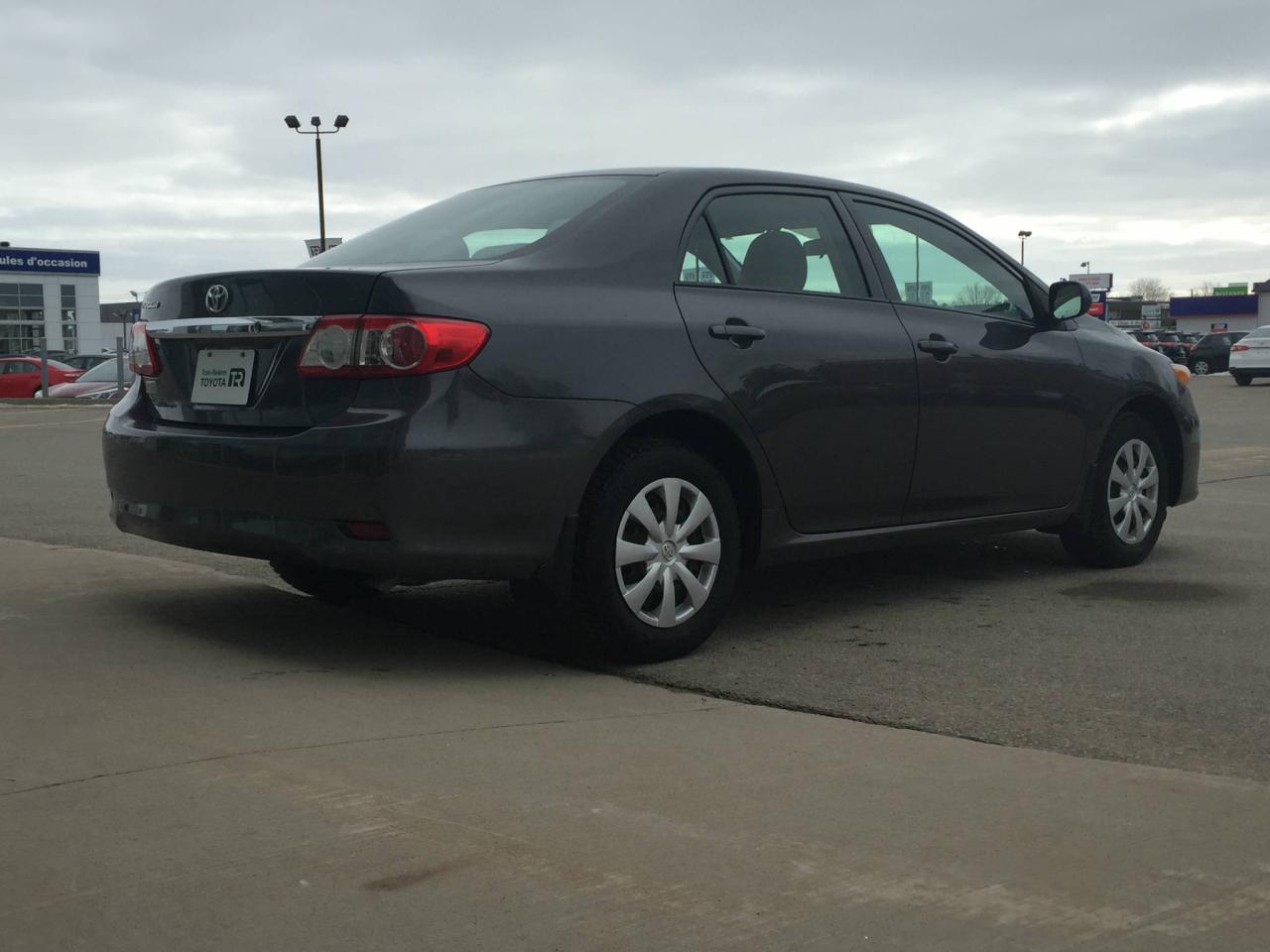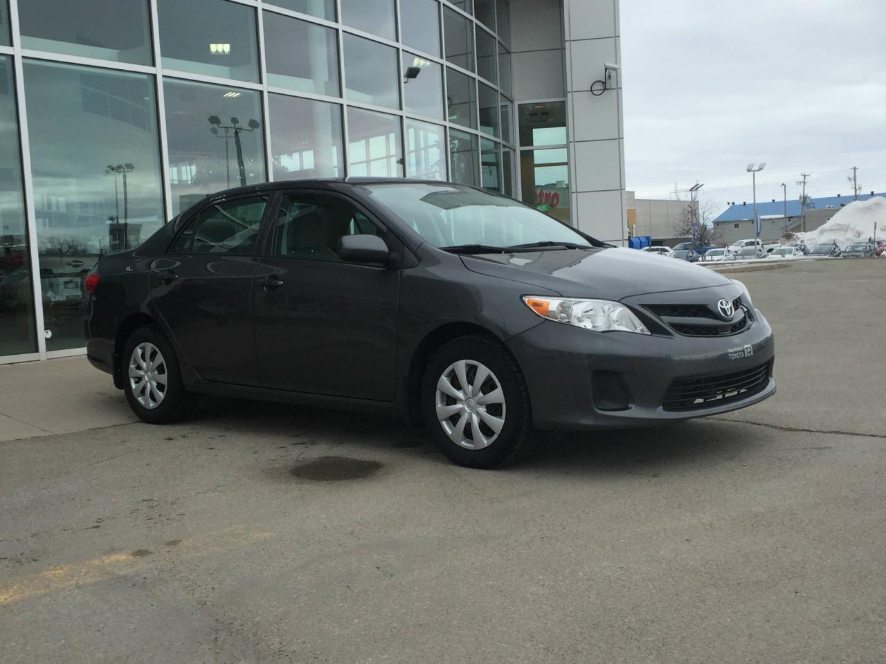 TOYOTA COROLLA CE 2013, MOTEUR DE 1.8 LITRES ET 4 CYLINDRES, TRANSMISSION AUTOMATIQUE, AIR CLIMATISÉ, DÉVERROUILLAGE ÉLECTRIQUE DES PORTIÈRES, RÉGULATEUR DE VITESSE, MIROIRS CHAUFFANTS ET ÉLECTRIQUES, RADIO AM/FM AVEC LECTEUR CD, PORT USB ET PRISE AUXILIAIRE... Vous êtes à la recherche d'un véhicule fiable et économique? Cette Corolla 2013 est faites pour vous. Venez rencontrer nos experts afin de faire l essai routier d un de nos véhicules dès aujourd'hui. Obtenez le rapport d'historique Carproof sur demande. Chez Trois-Rivieres Toyota, vous bénéficiez d un vaste choix de véhicules d occasion de toutes marques tel que Honda, Nissan, Hyundai, Ford, Mazda, Mitsubishi, Kia et plus encore! Le plus grand concessionnaire Toyota de la région de la Mauricie et Centre-du-Québec ! Situé entre Québec et Montréal, Trois-Rivières Toyota vous offre la première, deuxième et troisième chance au crédit. Visitez notre site web pour voir notre inventaire de voitures d occasion : www.trtoyota.ca.
