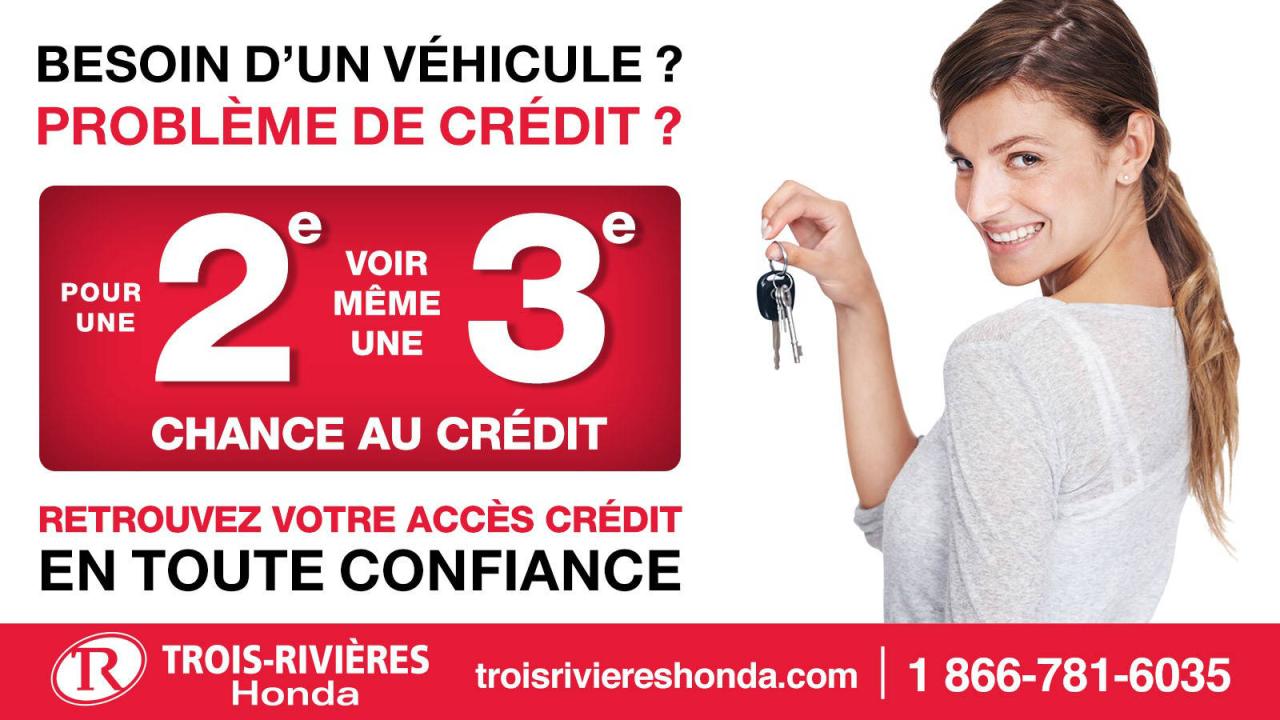Contactez un conseiller d'occasion ou faites une demande de crédit en ligne au www.troisriviereshonda.com