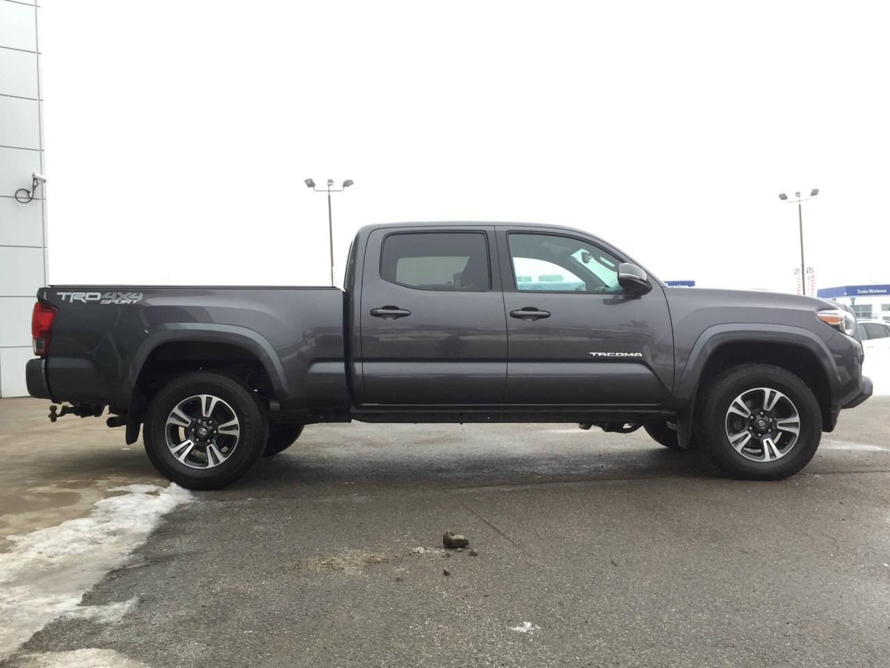 TOYOTA TACOMA TRD SPORT 4x4, CABINE DOUBLE, BOÎTE COURTE, JANTES EN ALLIAGE, MARCHEPIEDS, DÉMARRAGE BOUTON-POUSSOIR, CAMÉRA DE RECUL, PHARES ANTIBROUILLARD, SYSTÈME DE NAVIGATION, AIR CLIMATISÉ, GROUPE ÉLECTRIQUE, RÉGULATEUR DE VITESSE, ET BIEN PLUS ENCORE! Chez Trois-Rivieres Toyota, vous bénéficiez d'un vaste choix de véhicules d'occasion de toutes marques tel que Honda, Nissan, Hyundai, Ford, Mazda, Mitsubishi, Kia et plus encore! Le plus grand concessionnaire Toyota de la région de la Mauricie et Centre-du-Québec ! Situé entre Québec et Montréal, Trois-Rivières Toyota vous offre la première, deuxième et troisième chance au crédit. Venez rencontrer nos experts afin de faire l'essai routier d'un de nos véhicules. Obtenez le rapport d'historique Carproof sur demande Visitez notre site web pour voir notre inventaire de voitures d'occasion : www.trtoyota.ca.
