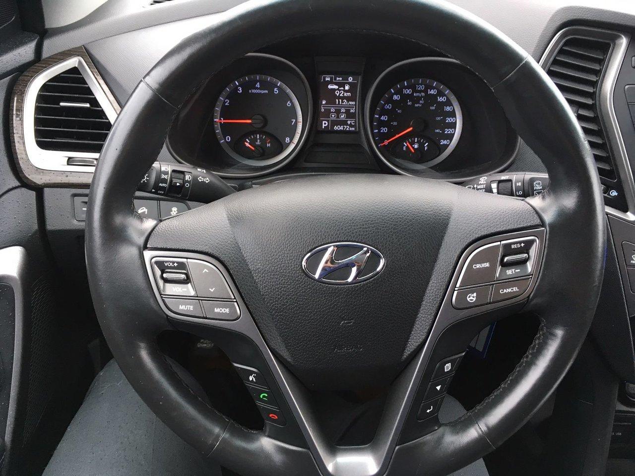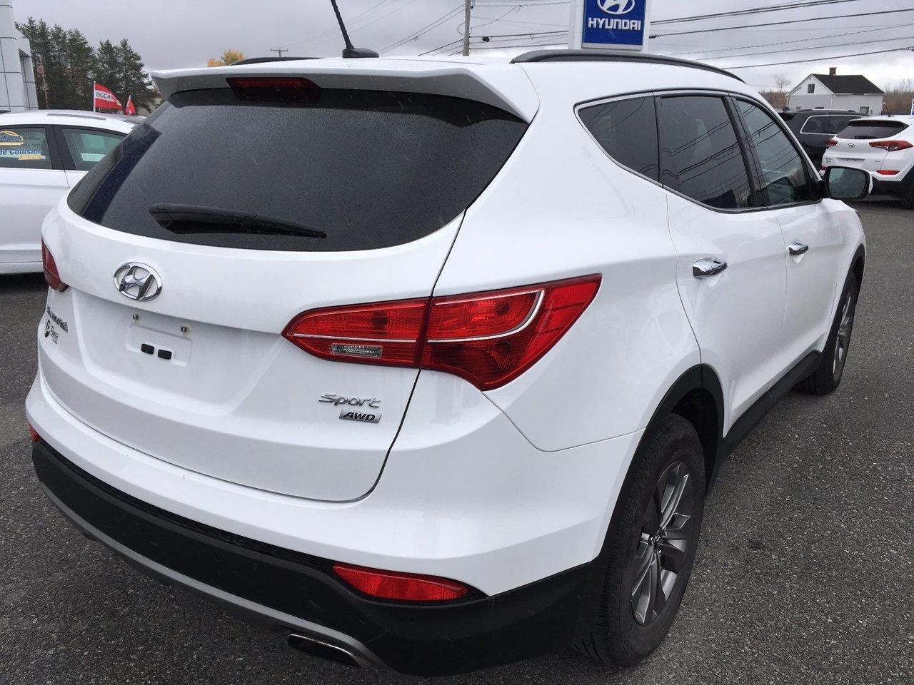 Hyundai Santa Fe Sport Premium AWD Si?ges chauffants JANTES ALLIAGES, D?FLECTEUR CAPOT 2015Régulateur de vitesse, Essuie-glaces intermittents, Anti-démarreur, Freins ABS, Contrôle de stabilité, Coussin gonflable conducteur, Coussins gonflables latéraux, Lecteur CD, Lecteur MP3, Volant ajustable, Tapis protecteurs, Volant gainé de cuir, Phares automatiques, Rétroviseur électrique, Sièges arrières chauffants, Direction assistée, Rétroviseurs chauffants, Siège à réglage électrique, Coussins gonflables arrière pour la tête, Siège conducteur - soutien lombaire, Démarrage sans clé, Freins à disque, Sièges chauffants - Avant, Antipatinage, Phares antibrouillards, Verrous de sécurité pour enfants, Sièges baquets, Technologie Bluetooth intégrée, Entreposage Média sur disque dur, Aluminium, Climatisation, Volant chauffant