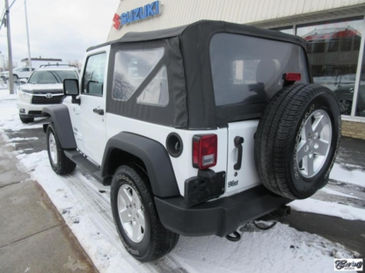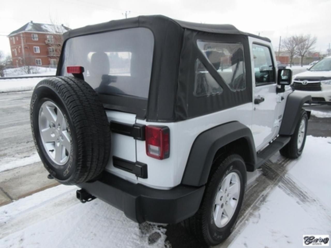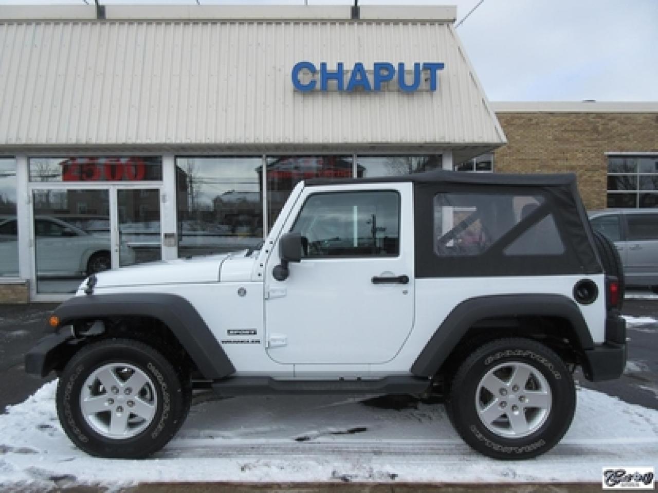 Jeep Wrangler Sport 2014\n\nRégulateur de vitesse, Essuie-glaces intermittents, Anti-démarreur, Freins ABS, Contrôle de stabilité, Coussin gonflable conducteur, Lecteur CD, Lecteur MP3, Chauffe-moteur, Tachymètre, Commandes audio au volant, Sièges arrières rabattables, Volant ajustable, Marchepieds, Tapis protecteurs, Attelage remorque, Ordinateur de bord, Radio AM/FM, Direction assistée, Jantes en alliage, Antipatinage, Phares antibrouillards, Système de surveillance de la pression des pneus, Sièges baquets\n\nSuperbe Jeep, 4 PNEUS HIVER SUR RIMS INCLUS, mags, marchepieds, attache-remorque, ratio du différentiel de 3.73, bas kilométrage, 1 seul proprio (55 ans), bien entretenu, freins comme neufs, faut voir!!! Carproof disponible, aucun accident...