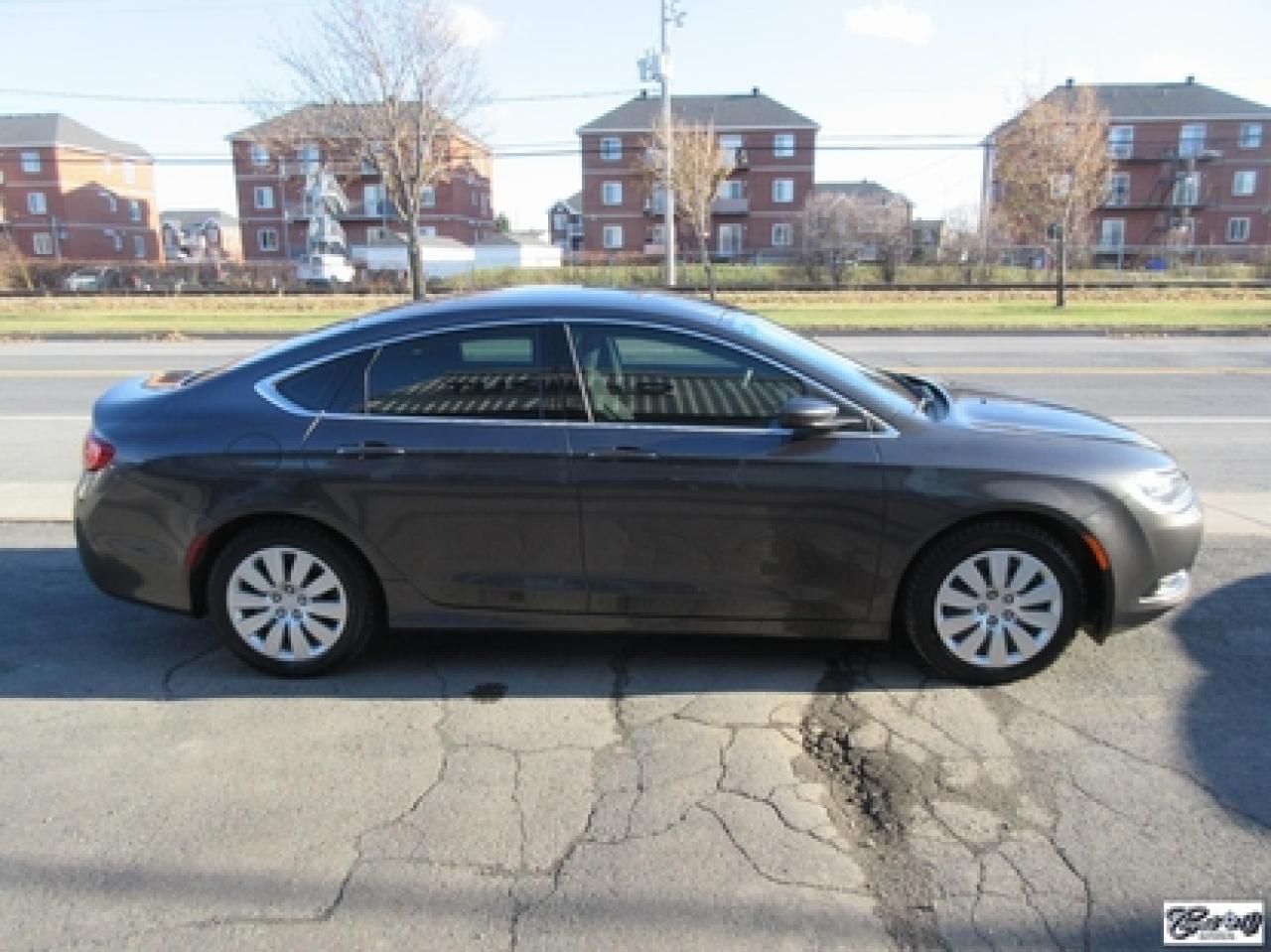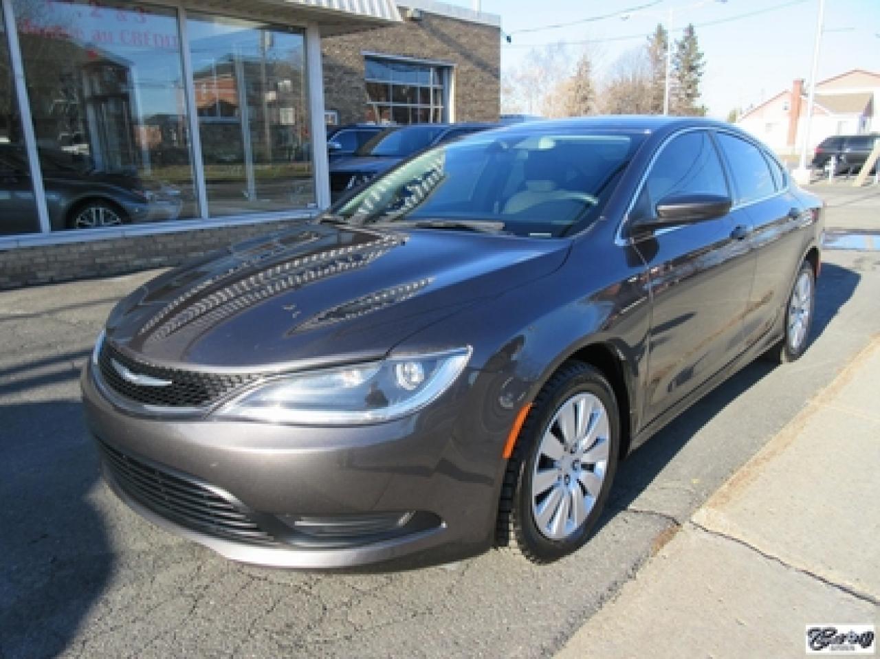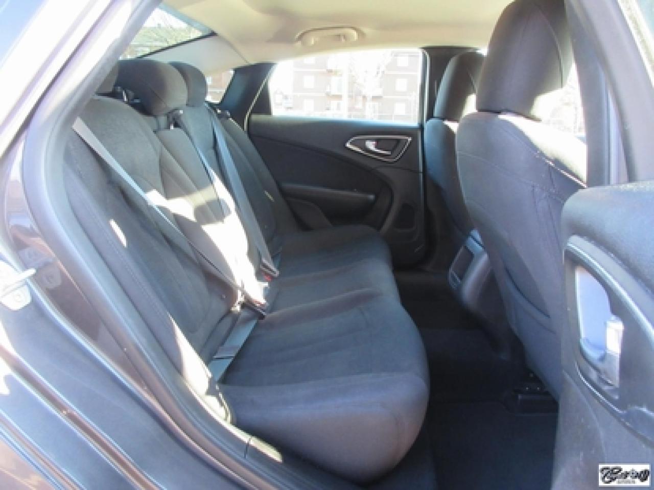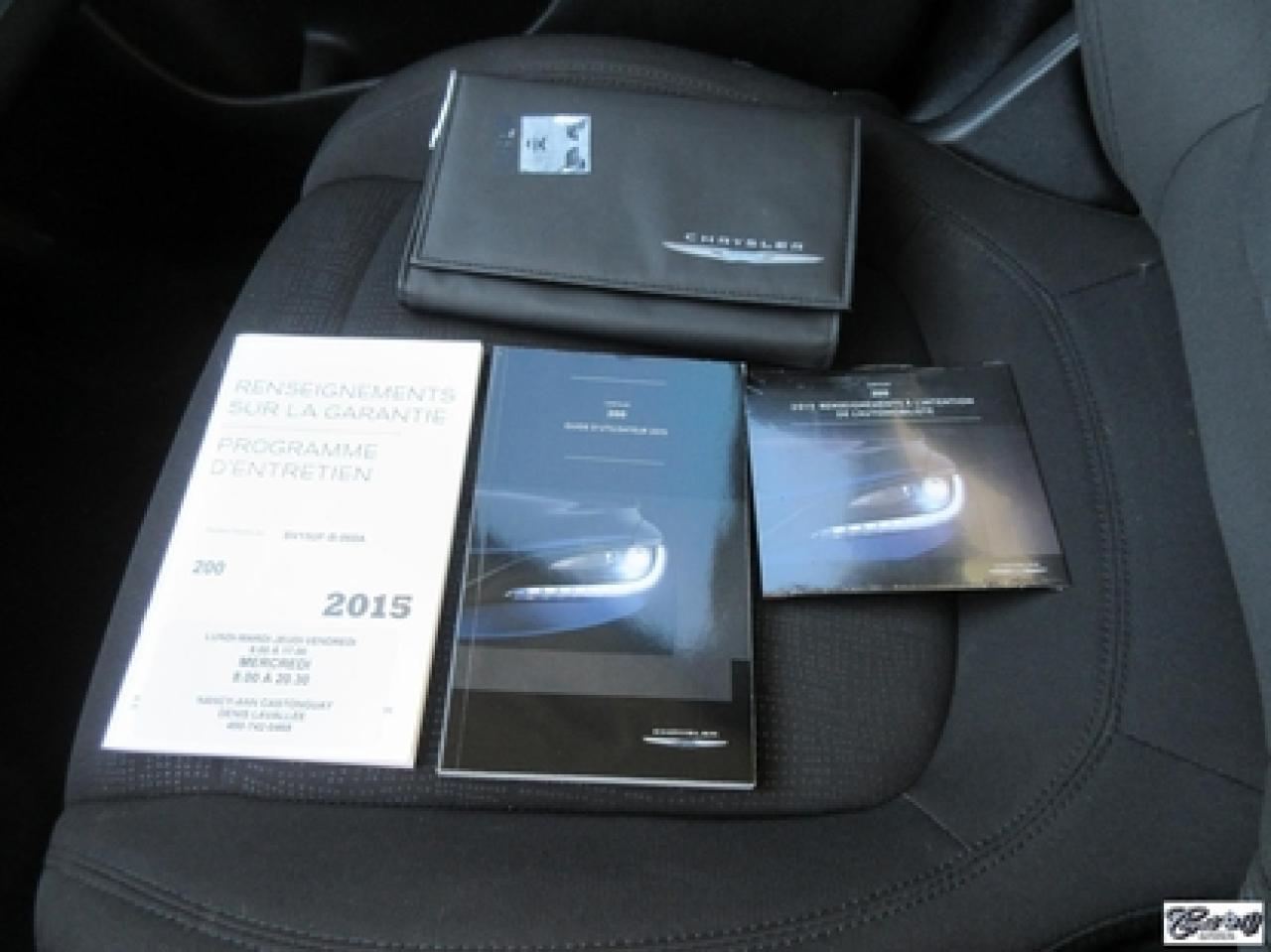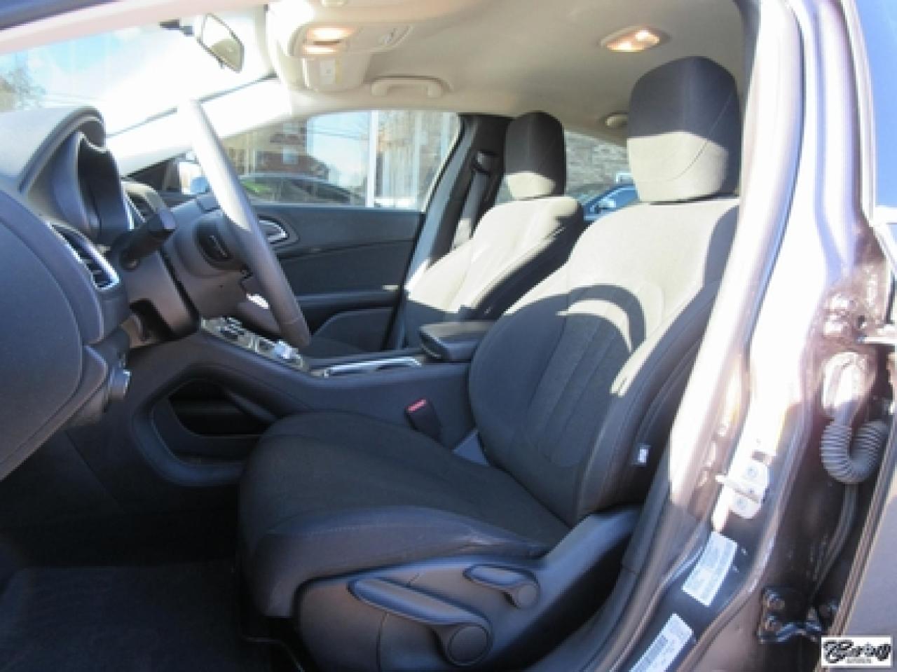 Chrysler 200 LX 2015\n\nRégulateur de vitesse, Essuie-glaces intermittents, Anti-démarreur, Freins ABS, Contrôle de stabilité, Coussin gonflable conducteur, Démarreur à distance, Lecteur MP3, Chauffe-moteur, Portes électriques, Tachymètre, Vitres électriques, Air climatisé, Commandes audio au volant, Sièges arrières rabattables, Volant ajustable, Tapis protecteurs, Vitres teintées, Ordinateur de bord, Radio AM/FM, Direction assistée, Télédéverrouillage, Système d'alarme, Rétroviseurs électriques, Antipatinage, Coussins gonflables, Enjoliveurs de roues, Verrous de sécurité pour enfants, Système de surveillance de la pression des pneus, Dégivreur de lunette arrière, Miroirs ajustables de l'intérieur, Sièges baquets, Port USB\n\nBALANCE DE GARANTIE PROLONGÉE PLAN OR CHRYSLER GLOBALE JUSQU'AU 13 MARS 2020 OU 100000 KM!!! 4 pneus hiver comme neufs, dem. à distance, gr. électrique, A/C, vitres teintées, traité antirouille, superbe berline spacieuse et économique, AUBAINE AUBAINE AUBAINE!!! Carproof disponible...