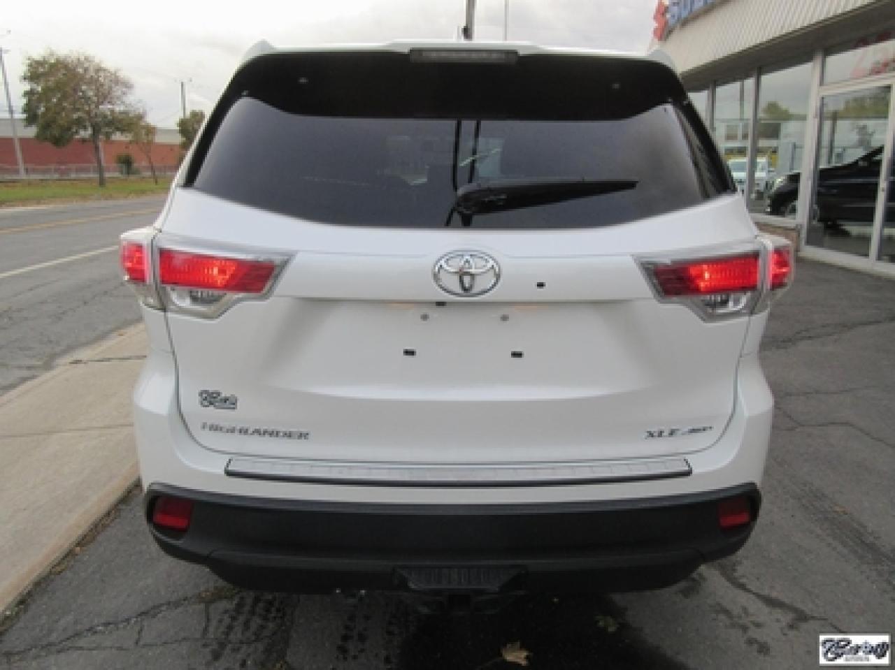 Toyota Highlander Xle V6 Awd 2015\n\nRégulateur de vitesse, Toit ouvrant, Essuie-glaces intermittents, Essuie-glace arrière, Anti-démarreur, Freins ABS, Contrôle de stabilité, Coussin gonflable conducteur, Lecteur CD, Lecteur MP3, Coffre - Ouverture à distance, Miroirs chauffants, Portes électriques, Sièges électriques, Tachymètre, Vitres électriques, Air climatisé, Intérieur en cuir, Banquette de troisième rangée, Chauffage arrière, Climatisation deux zones, Commandes audio au volant, Sièges arrières rabattables, Sièges chauffants, Volant ajustable, Aileron, Tapis protecteurs, Vitres teintées, Attelage remorque, Radio satellite, Ordinateur de bord, Caméra de recul, Radio AM/FM, Protège-capot, Direction assistée, Télédéverrouillage, Système d'alarme, Rétroviseurs électriques, Jantes en alliage, Antipatinage, Phares antibrouillards, Coussins gonflables, Support à bagages, Verrous de sécurité pour enfants, Système de surveillance de la pression des pneus, Dégivreur de lunette arrière, Miroirs ajustables de l'intérieur, Sièges baquets, Technologie Bluetooth intégrée, Port USB, Climatiseur automatique, Système HomeLink\n\nWOW!!! Blanc perle intérieur en cuir tan, 4 PNEUS HIVER SUR RIMS INCLUS, toit ouvrant, navigation, caméra de recul, climatisation et chauffage arrière, 8 PASSAGERS, gr. électrique, sièges chauffants, entrée sans clé, "bluetooth", hayon électrique, système de repérage TAG, attache-remorque et +++. Capacité de remorquage de 5000 lbs, un très beau VUS luxueux, spacieux et fiable!!! Carproof disponible...