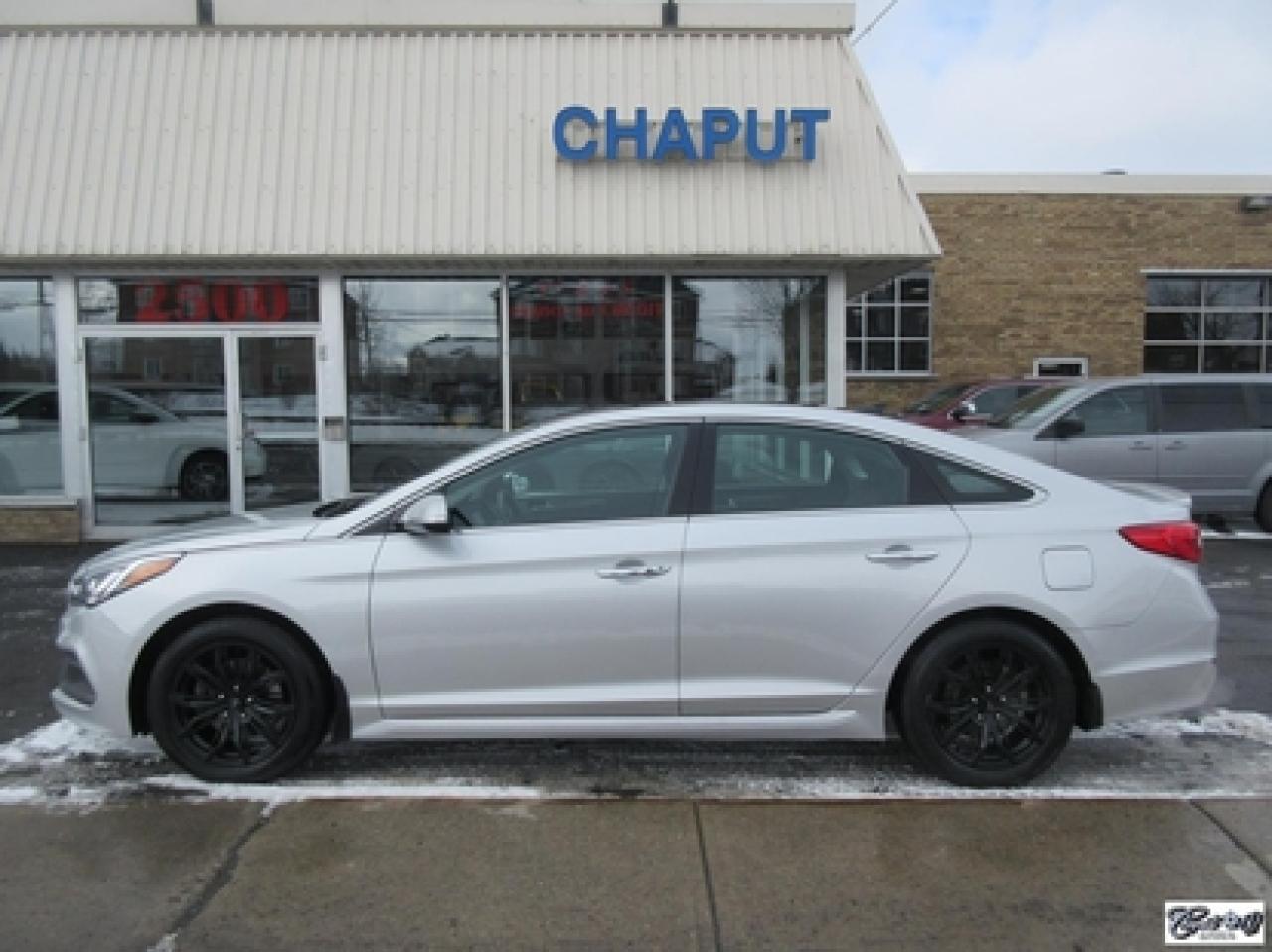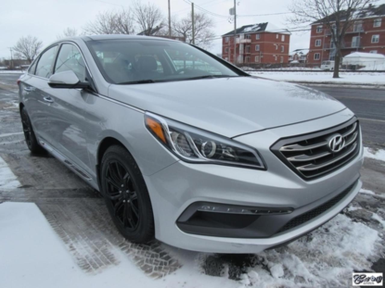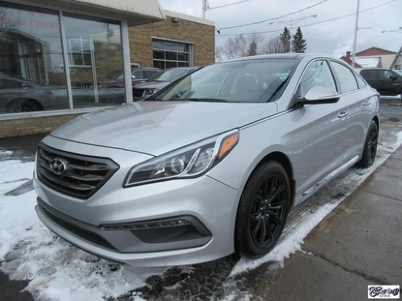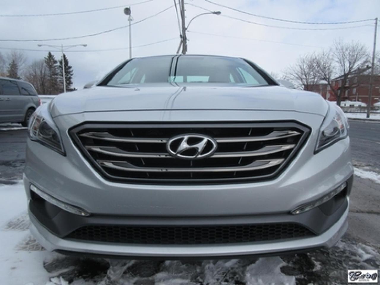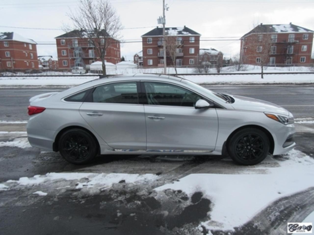 Hyundai Sonata Sport Tech 2016\n\nRégulateur de vitesse, Toit ouvrant, Essuie-glaces intermittents, Anti-démarreur, Freins ABS, Contrôle de stabilité, Coussin gonflable conducteur, Lecteur CD, Lecteur MP3, Coffre - Ouverture à distance, Miroirs chauffants, Portes électriques, Sièges électriques, Tachymètre, Vitres électriques, Air climatisé, Intérieur en cuir, Climatisation deux zones, Commandes audio au volant, Sièges arrières rabattables, Sièges chauffants, Volant ajustable, Aileron, Moulures protectrices latérales, Tapis protecteurs, Radio satellite, Ordinateur de bord, Caméra de recul, Radio AM/FM, Direction assistée, Télédéverrouillage, Système d'alarme, Rétroviseurs électriques, Jantes en alliage, Antipatinage, Phares antibrouillards, Coussins gonflables, Verrous de sécurité pour enfants, Dégivreur de lunette arrière, Miroirs ajustables de l'intérieur, Sièges baquets, Technologie Bluetooth intégrée, Port USB, Climatiseur automatique, Volant chauffant\n\nWOW!!! 8 PNEUS COMME NEUFS (été + hiver) + 8 MAGS INCLUS, intérieur cuir et tissus, toit panoramique, NAVIGATION, caméra de recul, entrée sans clé, "bluetooth", gr. électrique, A/C, climatisation et chauffage thermostatique et +++. Carproof disponible, aucun accident!!!