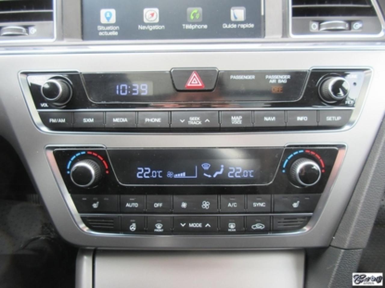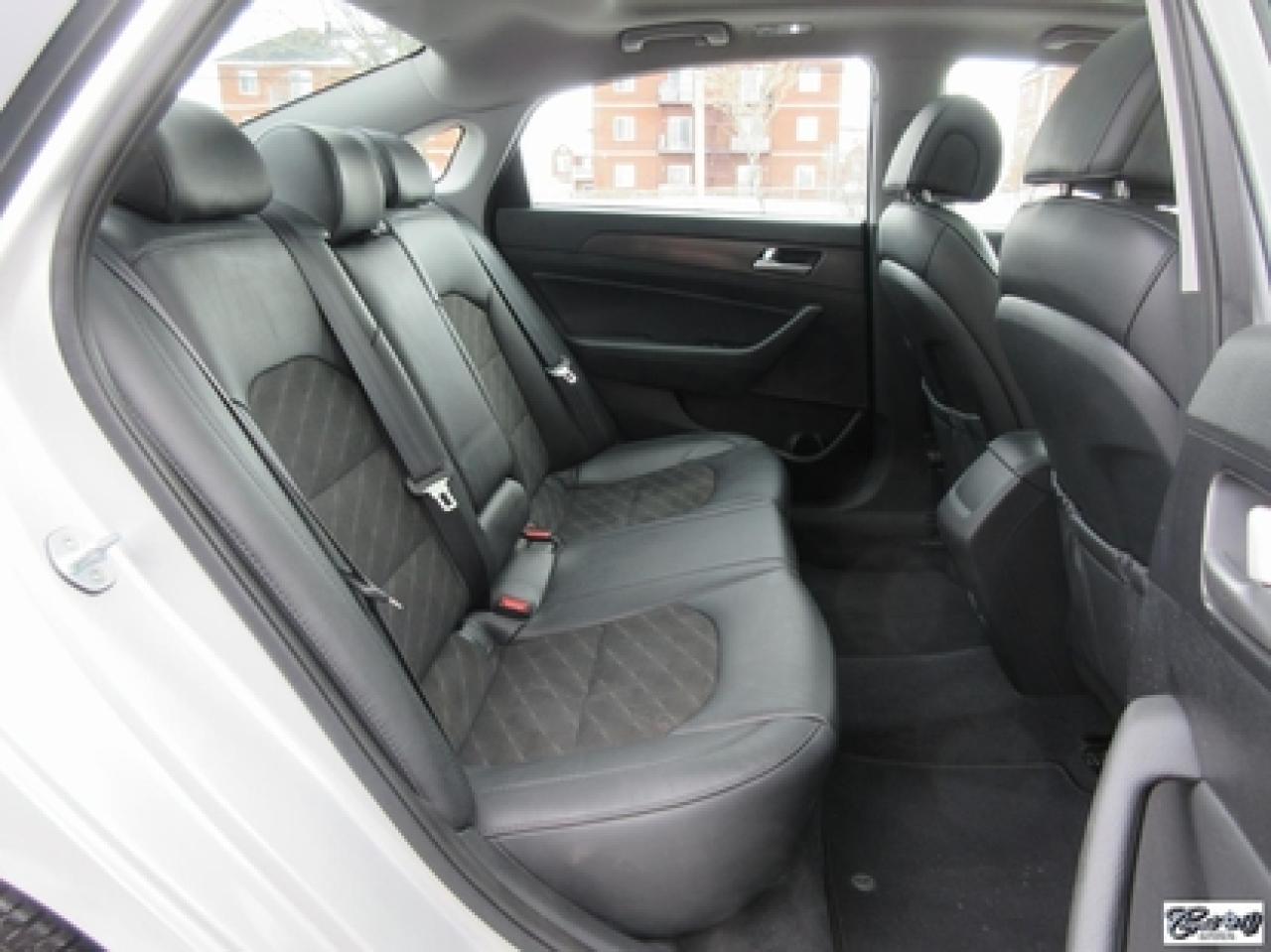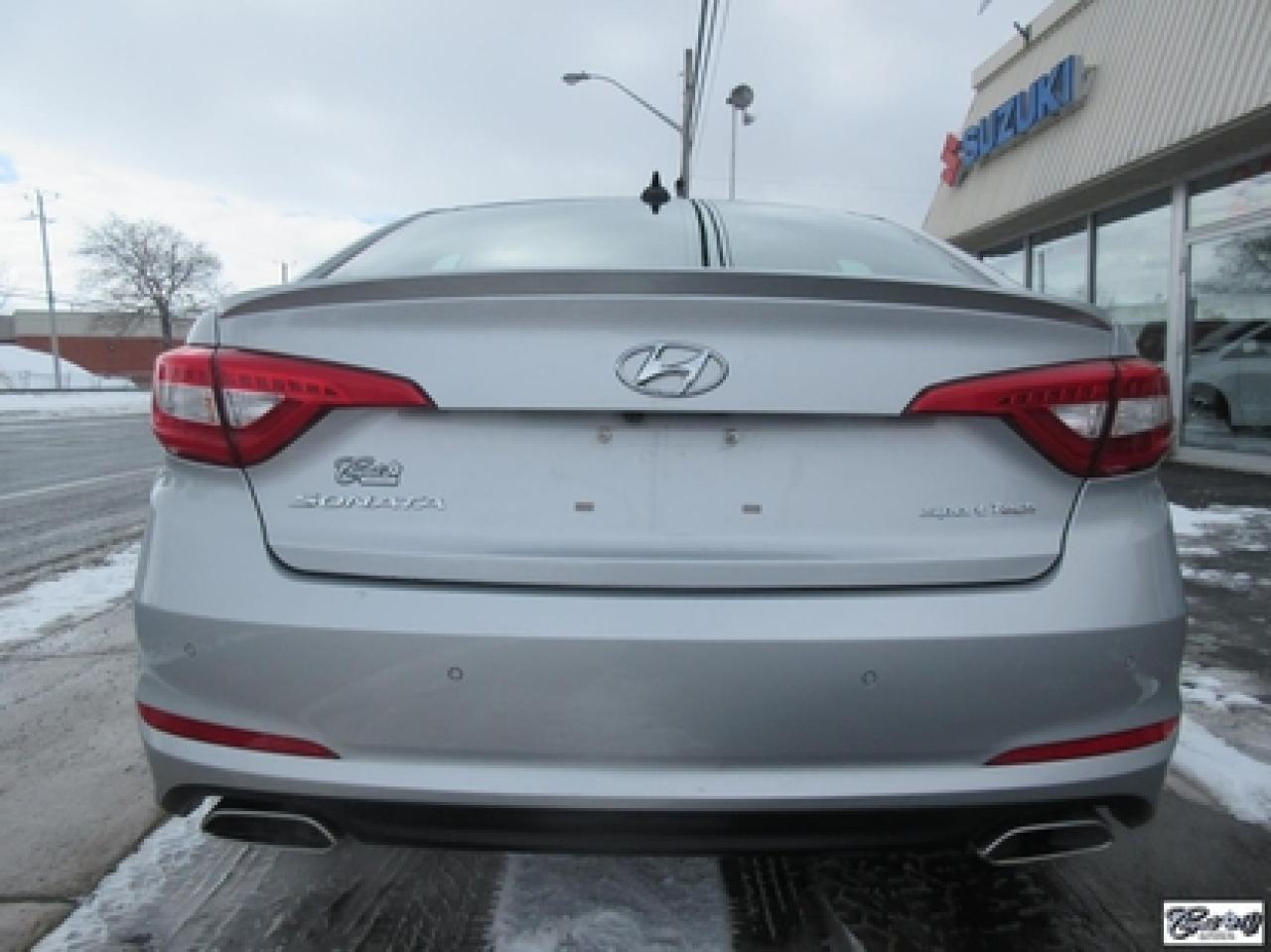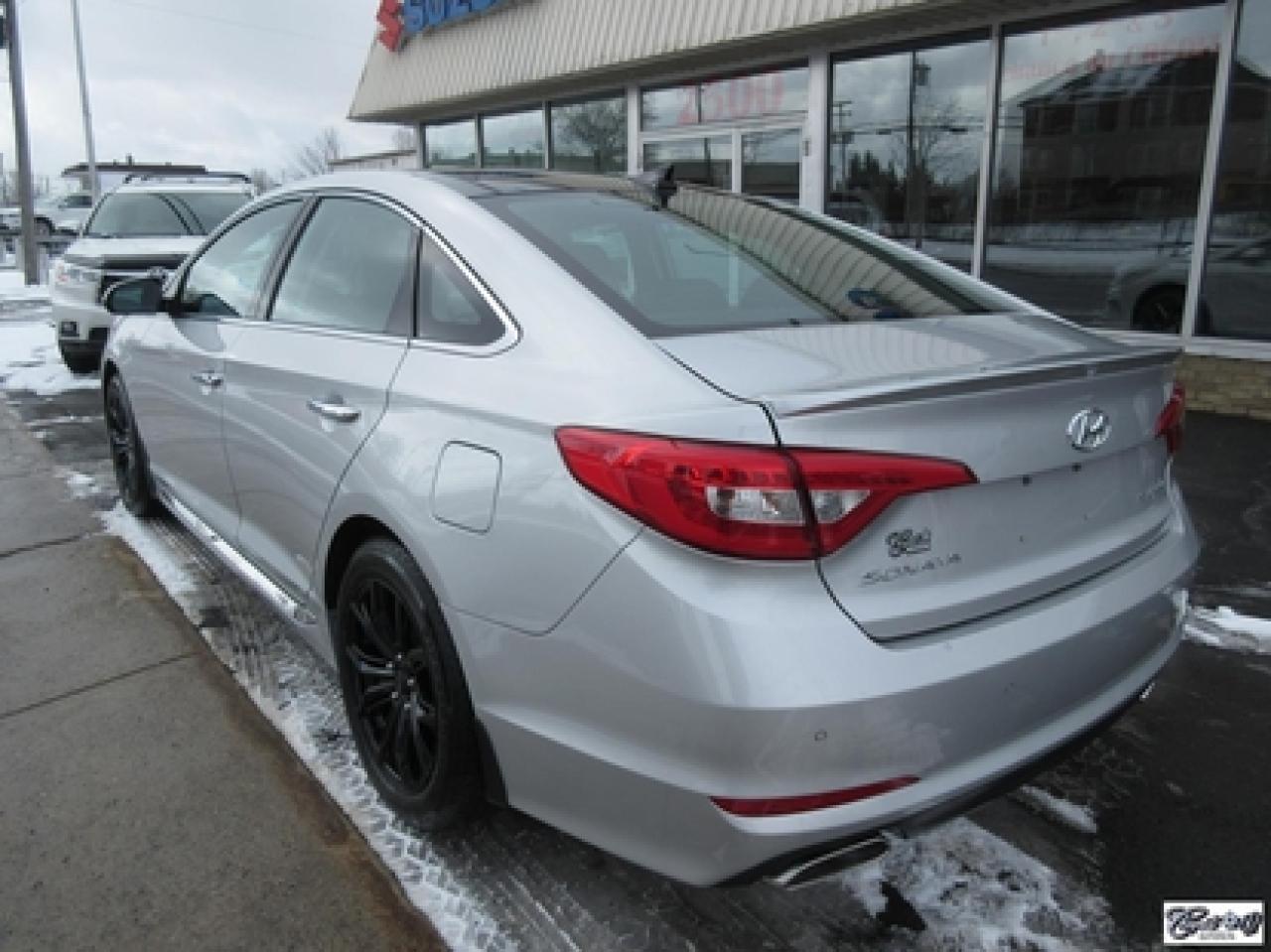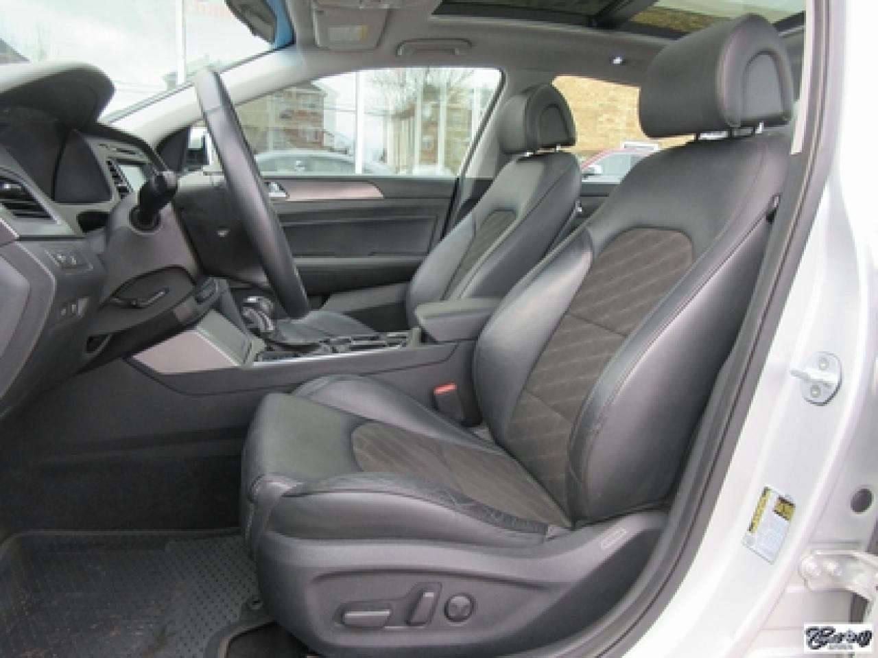 Hyundai Sonata Sport Tech 2016\n\nRégulateur de vitesse, Toit ouvrant, Essuie-glaces intermittents, Anti-démarreur, Freins ABS, Contrôle de stabilité, Coussin gonflable conducteur, Lecteur CD, Lecteur MP3, Coffre - Ouverture à distance, Miroirs chauffants, Portes électriques, Sièges électriques, Tachymètre, Vitres électriques, Air climatisé, Intérieur en cuir, Climatisation deux zones, Commandes audio au volant, Sièges arrières rabattables, Sièges chauffants, Volant ajustable, Aileron, Moulures protectrices latérales, Tapis protecteurs, Radio satellite, Ordinateur de bord, Caméra de recul, Radio AM/FM, Direction assistée, Télédéverrouillage, Système d'alarme, Rétroviseurs électriques, Jantes en alliage, Antipatinage, Phares antibrouillards, Coussins gonflables, Verrous de sécurité pour enfants, Dégivreur de lunette arrière, Miroirs ajustables de l'intérieur, Sièges baquets, Technologie Bluetooth intégrée, Port USB, Climatiseur automatique, Volant chauffant\n\nWOW!!! 8 PNEUS COMME NEUFS (été + hiver) + 8 MAGS INCLUS, intérieur cuir et tissus, toit panoramique, NAVIGATION, caméra de recul, entrée sans clé, "bluetooth", gr. électrique, A/C, climatisation et chauffage thermostatique et +++. Carproof disponible, aucun accident!!!