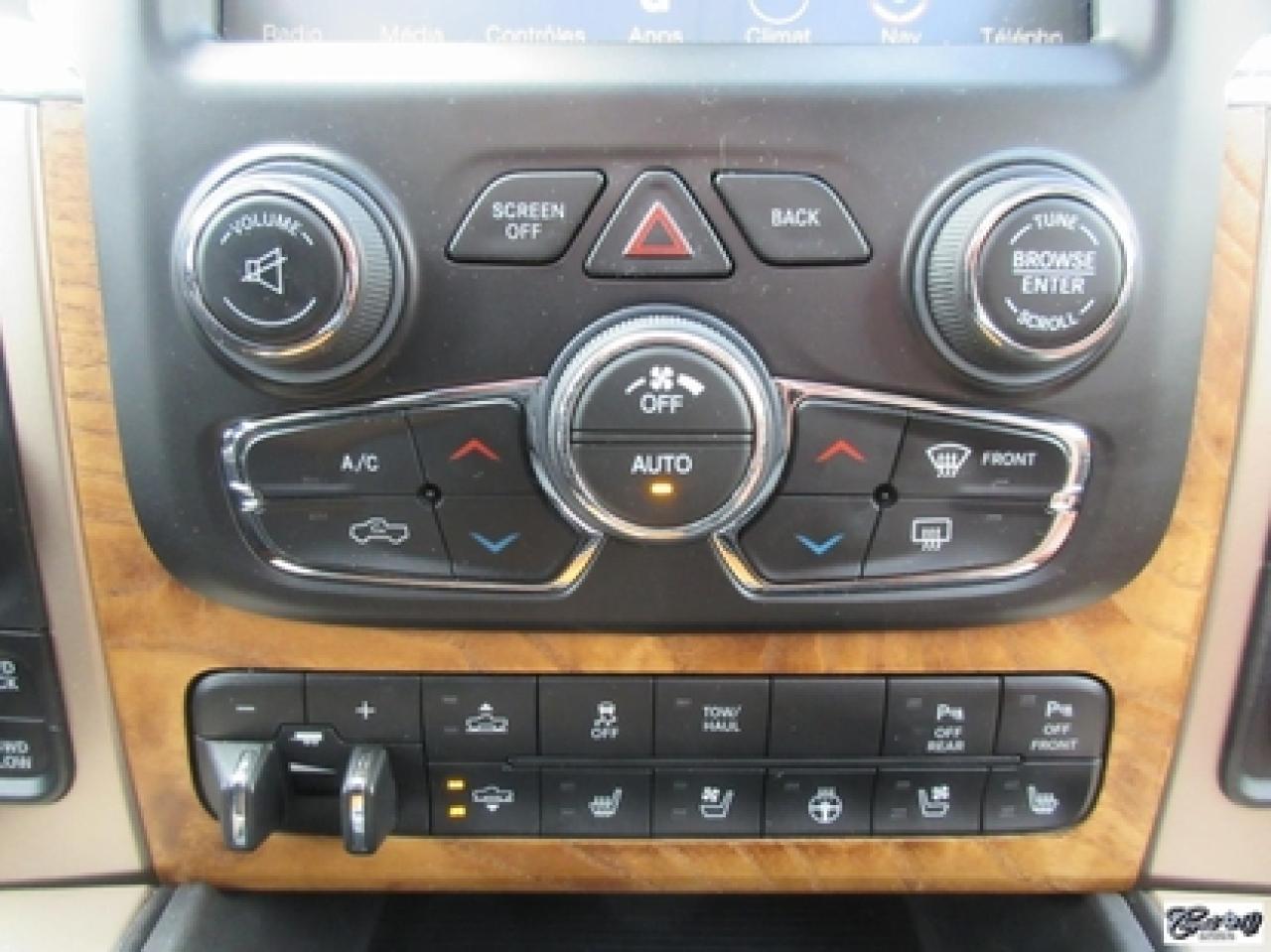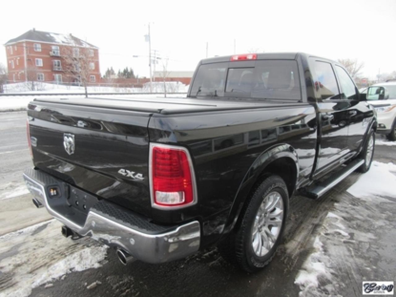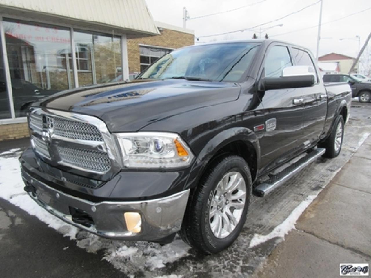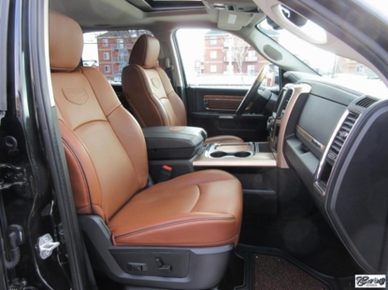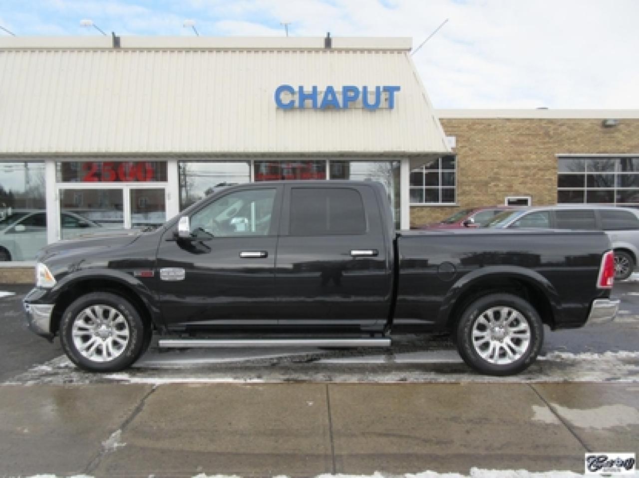 RAM 1500 Crew Longhorn Ecodiesel 2016\n\nRégulateur de vitesse, Toit ouvrant, Essuie-glaces intermittents, Anti-démarreur, Freins ABS, Contrôle de stabilité, Coussin gonflable conducteur, Démarreur à distance, Lecteur MP3, Chauffe-moteur, Miroirs chauffants, Portes électriques, Sièges électriques, Tachymètre, Vitres électriques, Air climatisé, Intérieur en cuir, Climatisation deux zones, Commandes audio au volant, Sièges arrières rabattables, Sièges chauffants, Volant ajustable, Marchepieds, Tapis protecteurs, Vitres teintées, Doublure de caisse, Attelage remorque, Radio satellite, Ordinateur de bord, Caméra de recul, Radio AM/FM, Sièges ventilés, Direction assistée, Télédéverrouillage, Système d'alarme, Essuie-glace détecteur de pluie, Rétroviseurs électriques, Jantes en alliage, Antipatinage, Phares antibrouillards, Coussins gonflables, Verrous de sécurité pour enfants, Système de surveillance de la pression des pneus, Miroirs ajustables de l'intérieur, Sièges baquets, Sièges avec fonction mémoire, Technologie Bluetooth intégrée, Port USB, Climatiseur automatique, Système HomeLink, Aide au stationnement (capteurs), Volant chauffant\n\nComme neuf!!! CREWCAB, cuir, toit ouvrant, NAVIGATION, caméra de recul, dem. à distance, sieges chauffants et ventilés, volant chauffant, "bluetooth", écran tactile 8.4 pouces, système de son ALPINE, couvert de boîte rigide repliable, miroirs de remorquage, contrôleurs de freins électriques d'origine, suspension pneumatique, ratio différentiel de 3.92, sièges arrières chauffants, marchepieds et +++. Un VRAI beau camion IMPECCABLE. Carproof disponible, aucun accident.
