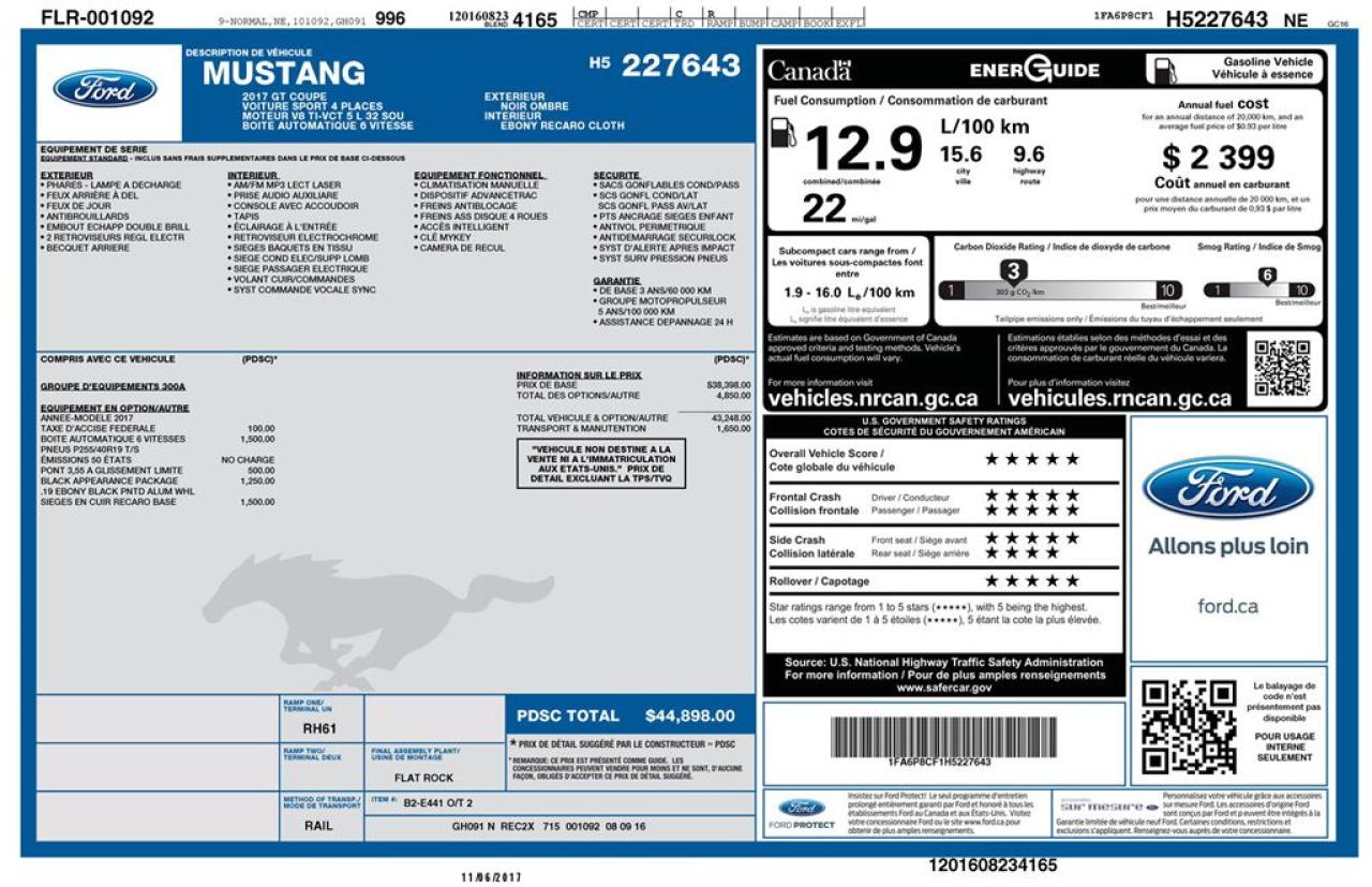 VÉHICULE JAMAIS ACCIDENTÉ !! - ENTIÈREMENT ÉQUIPÉ !! - PNBV : 2141 - TAILLE D'ORIGINE DES PNEUS : 255/40 R19 - MOTEUR DE 5.0L - VITRES ÉLECTRIQUES - MIROIRS ÉLECTRIQUES - PHARES AUTOMATIQUES - COMMANDES AU VOLANT - COMMANDES VOCALES - CONNECTIVITÉ BLUETOOTH - RÉGULATEUR DE VITESSE - SYSTÈME ANTIPATINAGE - CAMERA DE RECUL - CLIMATISATION - VOLANT GAINÉ DE CUIR - SÉLECTEUR DE VITESSE AU VOLANT - MODE DE CONDUITE : NORMAL / ECO / SPORT - RADIO CD / SATELLITE - RÉGULATEUR DE TEMPÉRATURE AUTOMATIQUE - PUSH START BUTTON - PRISE USB / AUXILIAIRE / 12 VOLTS **** LAQUERRE AUTO, LE PLUS GROS INVENTAIRE DE VÉHICULES D'OCCASION DES BOIS-FRANCS *** 1ÈRE, 2IÈME ET 3IÈME CHANCE AU CRÉDIT **** TAUX D'INTÉRÊT À PARTIR DE 3.99% **** LIVRAISON LE JOUR MÊME **** NOUS LIVRONS PARTOUT AU QUEBEC **** CONTACTEZ NOUS PAR TÉLÉPHONE : 1-866-928-7165 OU PAR TEXTO 1-819-350-7976 / 1-819-266-8084 ****